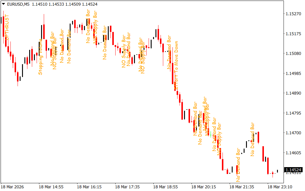 The VSA Text Indicator for MT4 is a valuable tool for traders who want to analyze market volume and price spread behavior. By displaying clear text signals on the chart, it helps traders identify potential supply and demand shifts.