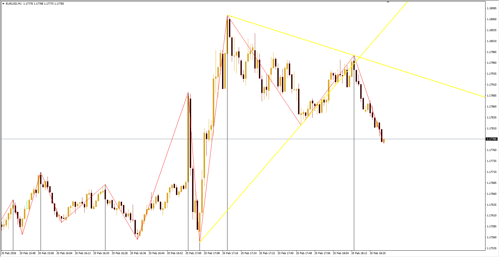 The red ZigZag line traces market direction and shifts whenever a significant price reversal occurs.