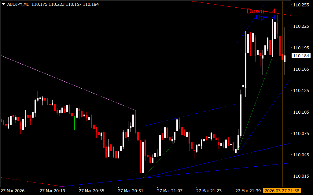 The indicator plots multiple lines around the price to form a channel and displays the count of up and down bars directly on the chart. This makes it a practical solution for traders looking for a simple way to gauge market momentum.