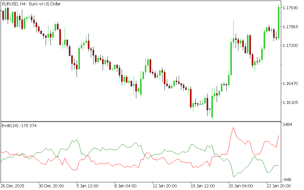 The Bears vs Bulls Indicator visualizes this battle by comparing bullish and bearish momentum using two colored lines, allowing traders to interpret market sentiment at a glance.
