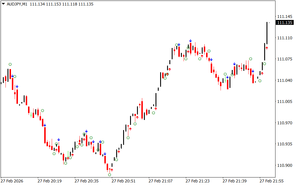 The Candles 1 Pilot Indicator for MT4 is a reliable entry signal tool that combines candlestick pattern analysis with volatility measurement to generate actionable trading opportunities. With its clean arrow-based system, traders can quickly identify potential buy and sell setups without manual pattern scanning.
