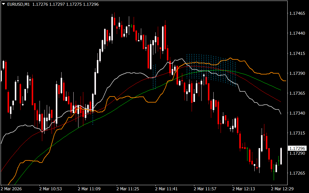 - Signal – Moving average with period Kijun, used to smooth short-term trends.