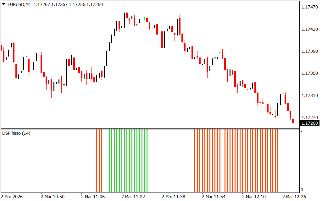 The Detrended Synthetic Price Indicator for MetaTrader 4 was first developed by John Ehlers. It is designed to show overbought and oversold market conditions and highlight potential trend reversals. Unlike traditional indicators, this version displays data as a histogram at the bottom of your chart, making it easy to visualize market momentum.