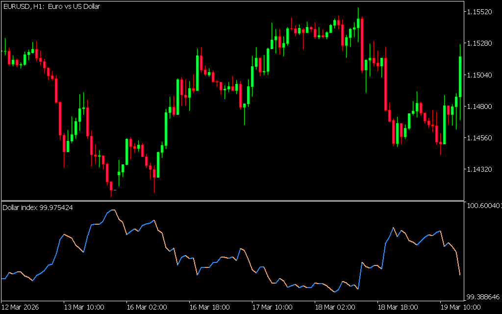 The Dollar Index Indicator for MT5 is a specialized trading tool that measures the strength of the US dollar in the financial markets. It replaces the standard MT5 USD Index chart by providing a clearer view of USD strength and weakness, helping traders make more accurate trading decisions across multiple currency pairs.