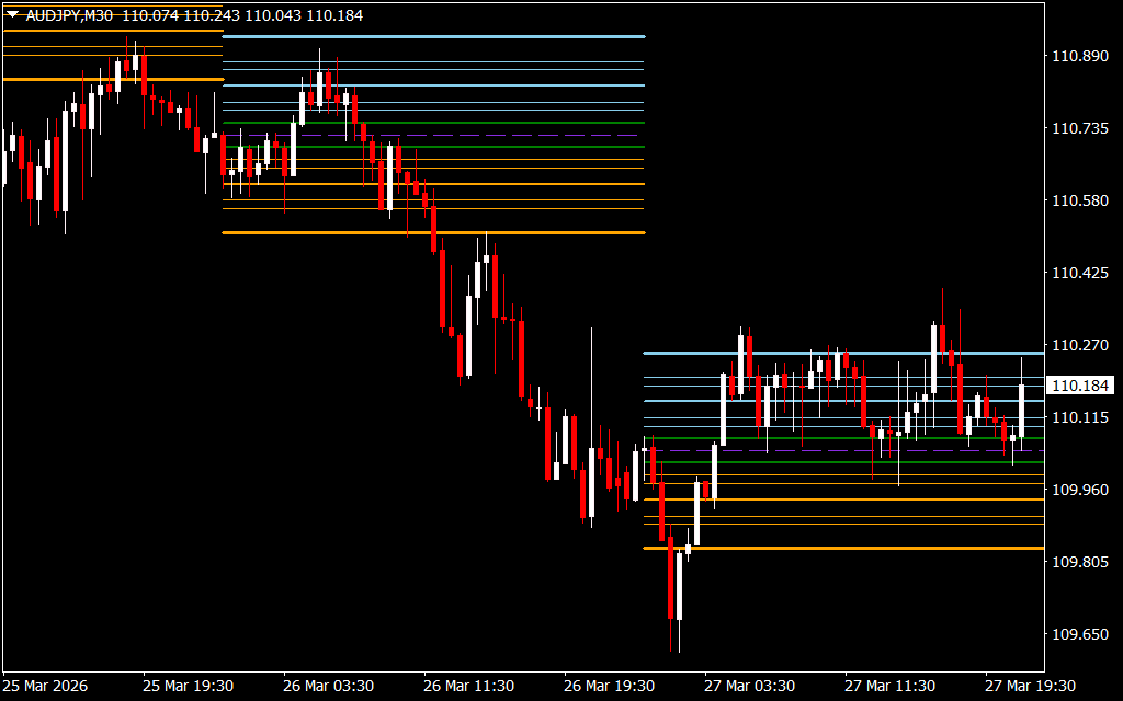 The indicator maps horizontal price levels that act as key decision zones in the market: