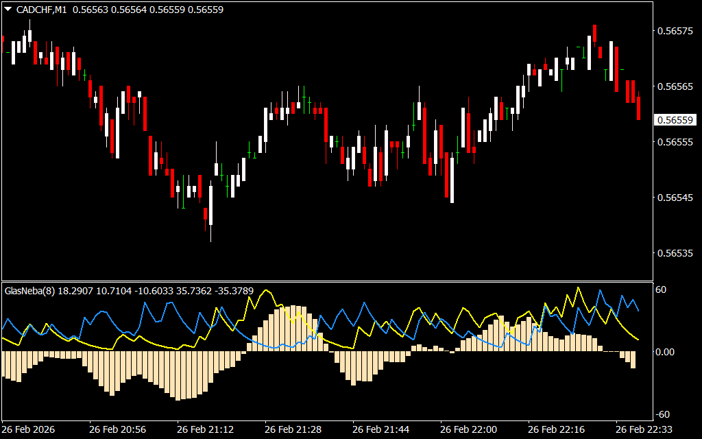 The Glasneba indicator for MT4 is a directional and strength forex Trend Indicator that combines DMI, ADX, and EMA. It provides clear buy and sell signals while showing the trend’s strength, making it a reliable tool for both beginner and advanced traders.