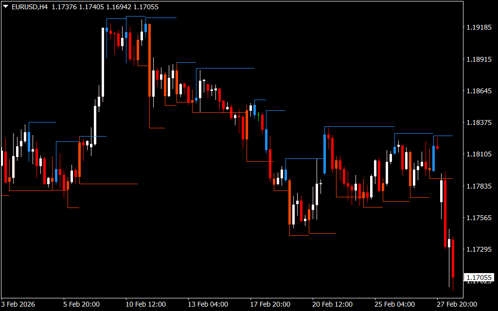 The Higher High Lower Low (HHLL) Indicator for MetaTrader 4 is a trend-following tool that identifies optimal entry points, trend direction, and stop-loss levels. It is particularly useful for traders who want to scale into positions during a trending market to maximize profits.