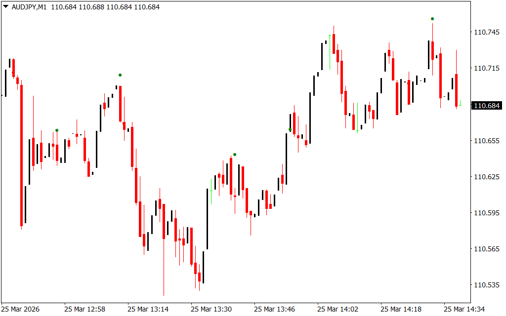 - Red Dot: Buy signal – occurs when price momentum increases