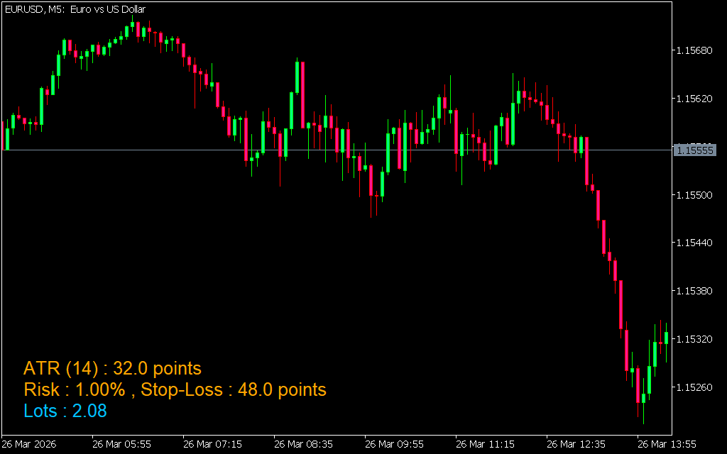By default, the indicator sets the risk at 1% of your account balance, but this can be easily adjusted based on your trading strategy.