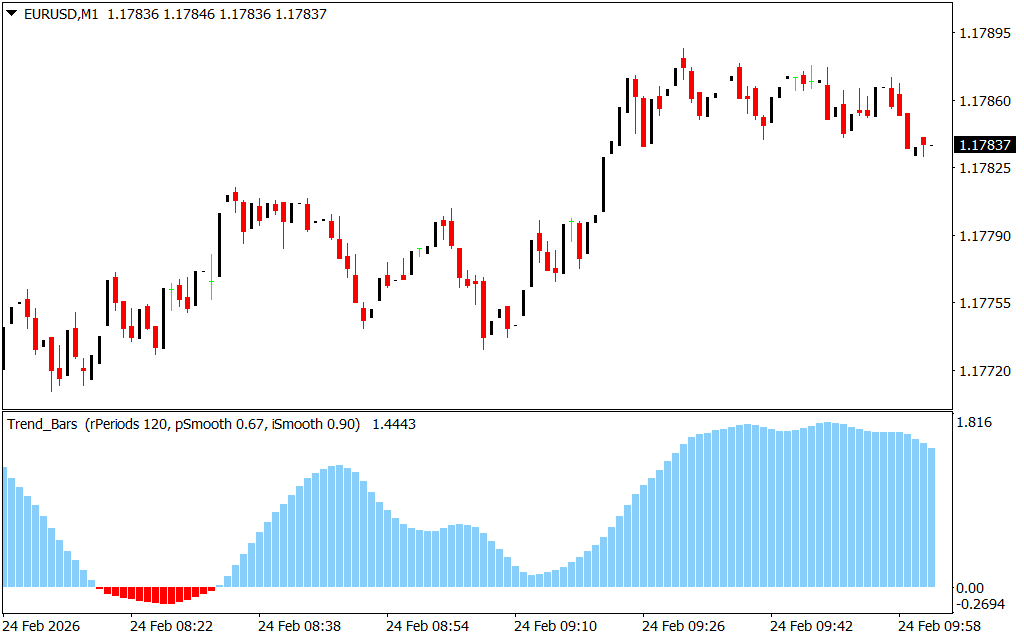 The size and consistency of the bars provide additional insight into Trend Strength. Strong, consecutive bars of the same color indicate solid momentum, while alternating or shrinking bars may signal weakening trends or consolidation phases.