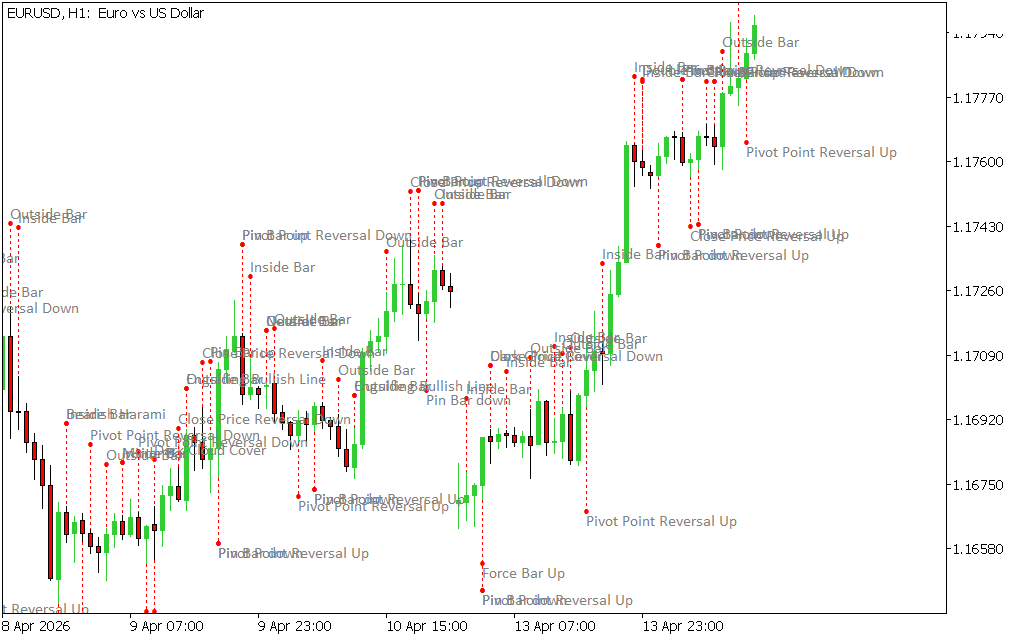 Price Action Trading requires experience and fast interpretation of candlestick formations. The Patterns Indicator automates this process by detecting predefined setups in real time.
