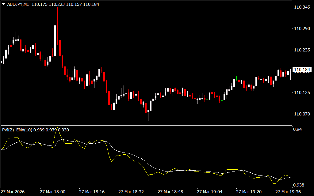 The PVI Indicator works by plotting the Exponential Moving Average (EMA) of period-10 as an oscillator: