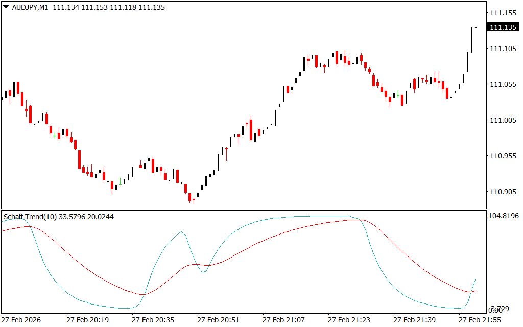 - Schaff Trend Cycle (STC) – Uses a fast and slow EMA to identify cycles and trend momentum.