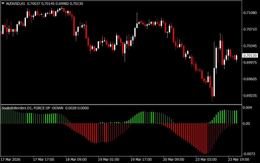 The Snake Force Indicator for MT4 is an effective histogram-based tool that helps traders spot trends, momentum strength, and potential reversals. Green bars signal bullish momentum, while red bars indicate bearish conditions, making it a valuable addition to any MT4 trading setup.