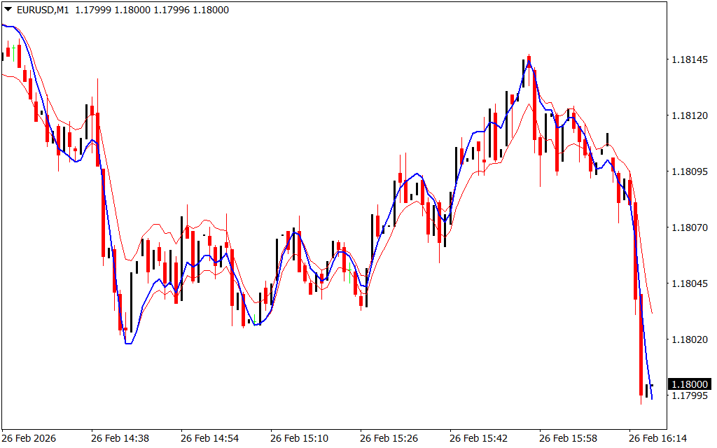 - Bullish Trend: The red signal line moves to touch the upper channel line – enter a buy trade