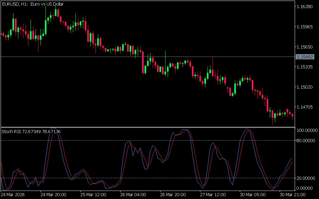 The StochRSI Indicator for MetaTrader 5 (MT5) combines the strengths of the Relative Strength Index (RSI) and Stochastic Oscillator to provide more accurate trading signals. This powerful indicator is ideal for both novice and experienced traders, offering better precision than using RSI or Stochastic independently.