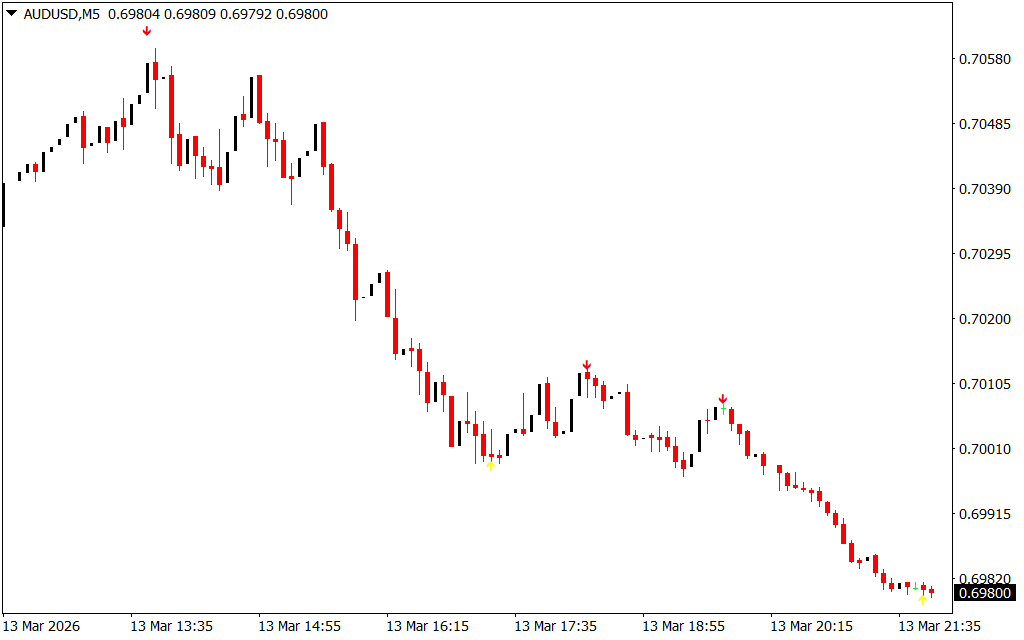 - Exit the trade when a yellow arrow appears, signaling a possible reversal.