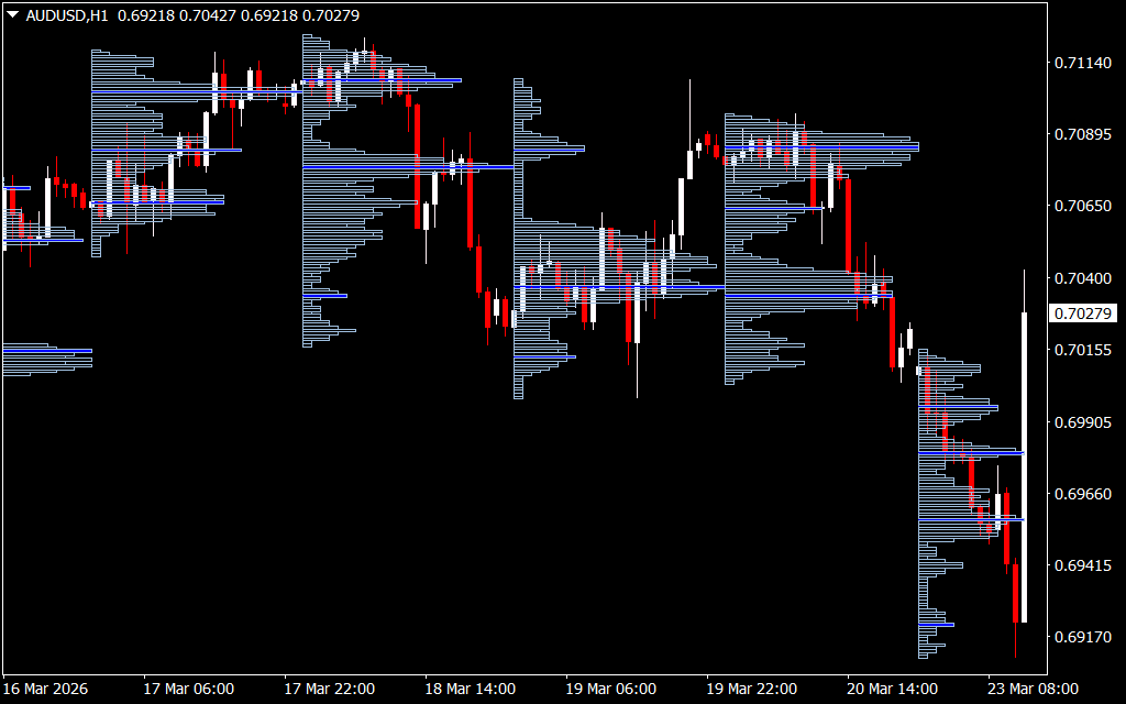 The indicator displays horizontal bars at each price level: