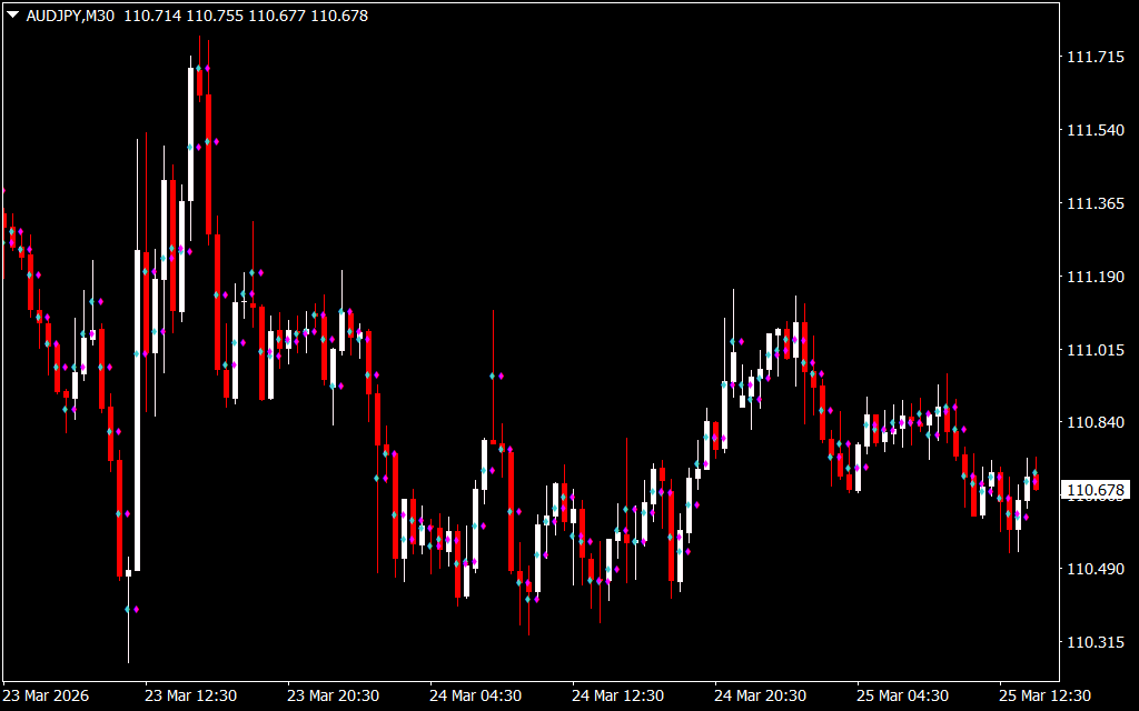 - Bearish Trend: Magenta dot appears above the candlestick → potential sell