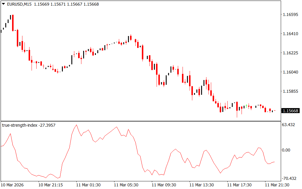 - Bearish Momentum – When the TSI line is below 0.00, the asset shows downward strength. Traders may look for sell opportunities in line with additional technical signals.